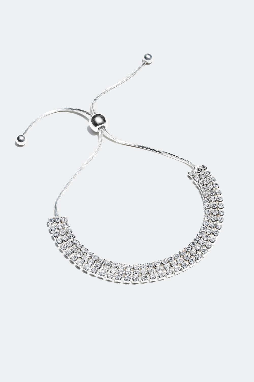 Strassarmband i justerbar längd med glidstängning. Armbanden är silverfärgade.
