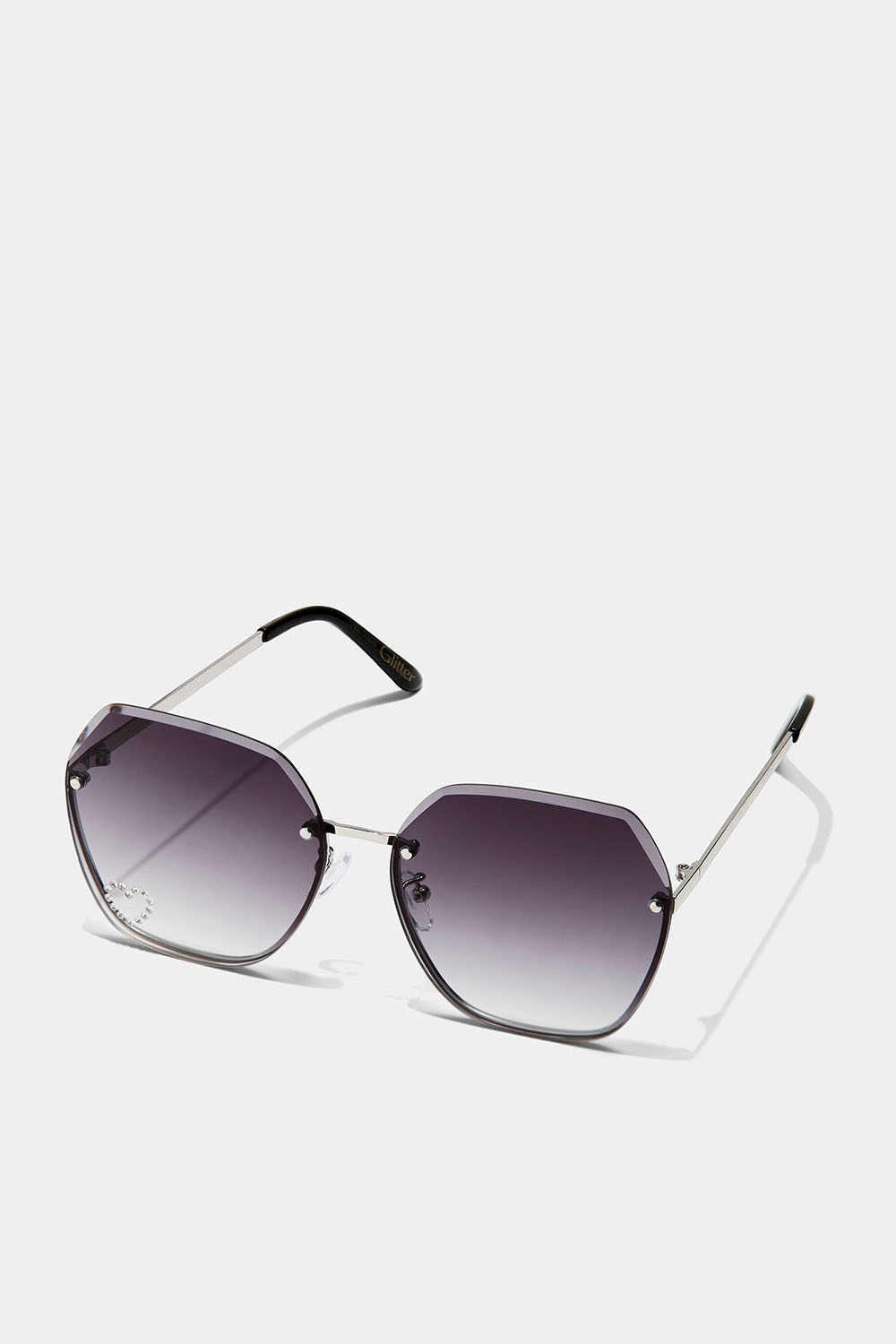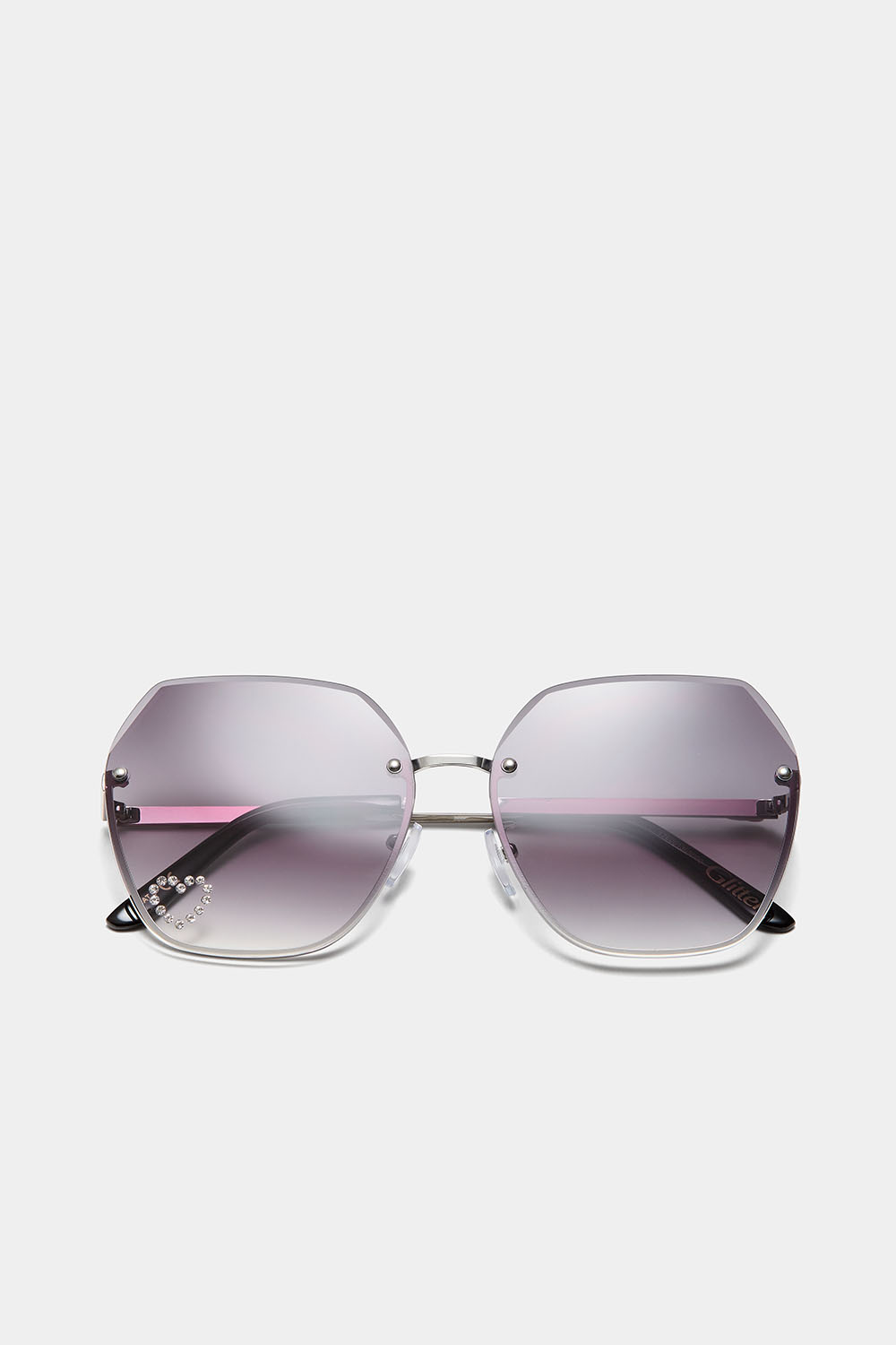 70-talsinspirerade, oversize solglasögon med tonat glas och ett dekorativt hjärta i strass på glaset. Glaset är vinkelslipat i överkanten för extra retrokänsla.