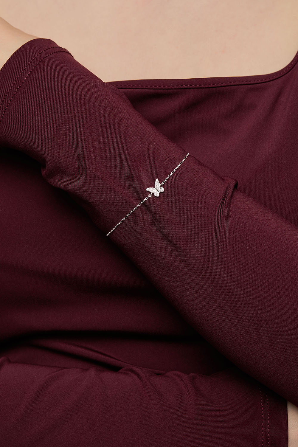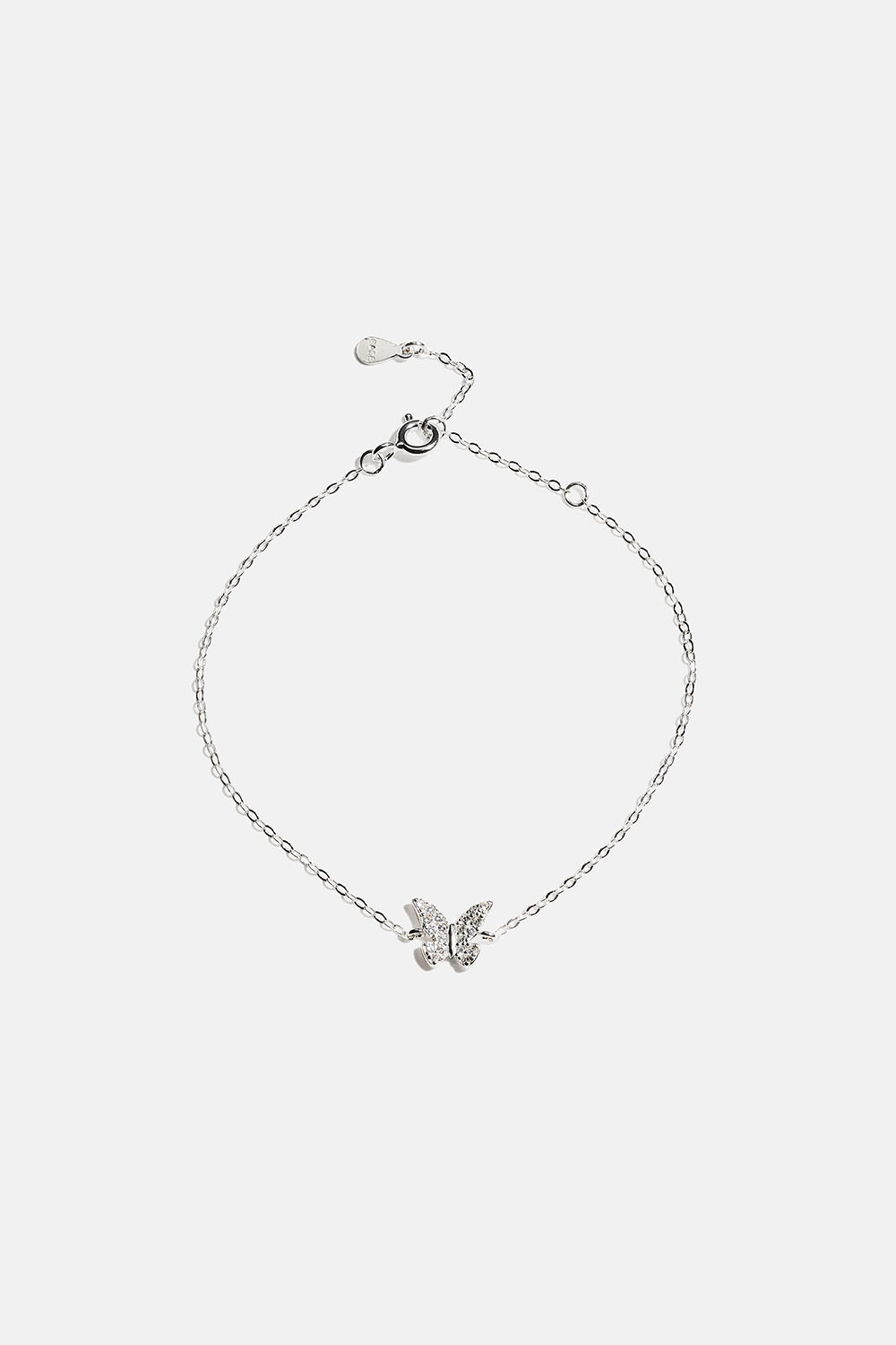 Armband i äkta silver med tunn kedja och en fjäril dekorerad med små Cubic Zirconia-stenar.