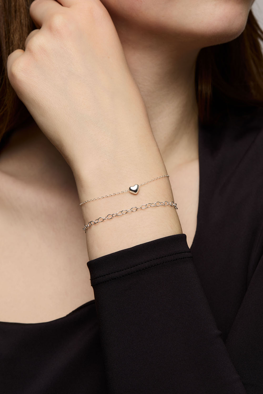 Armband i äkta silver med tunn kedja och hjärtformad berlock.