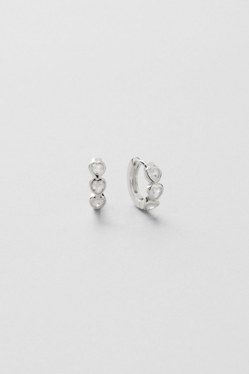 Huggie hoops örhängen med hjärtformade klara Cubic Zirconia stenar i en bezelfattning i äkta sterling silver 925.
