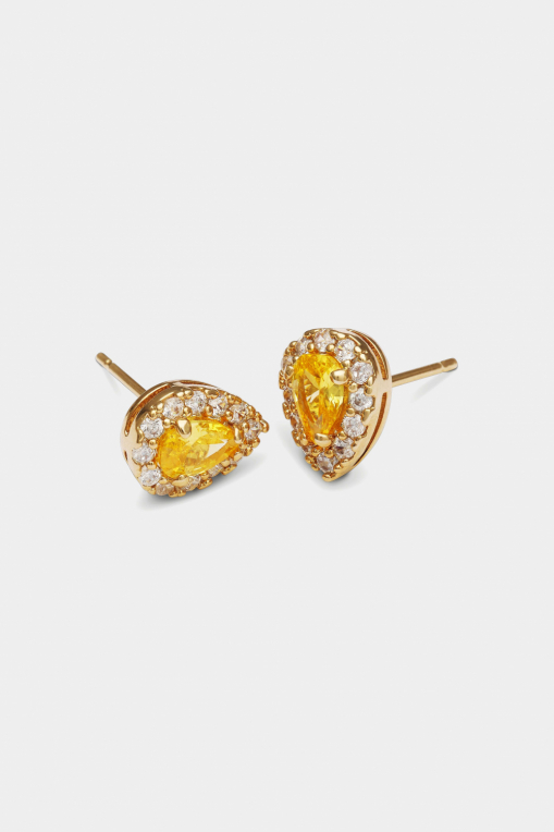 Bianca-örhängena är fängslande smycken med en fantastisk päronformad gul kristall i en lyxig guldpläterad fattning. Dessa örhängen kombinerar elegans och modern sofistikering, vilket gör dem perfekta för både vardagsbruk och speciella tillfällen.