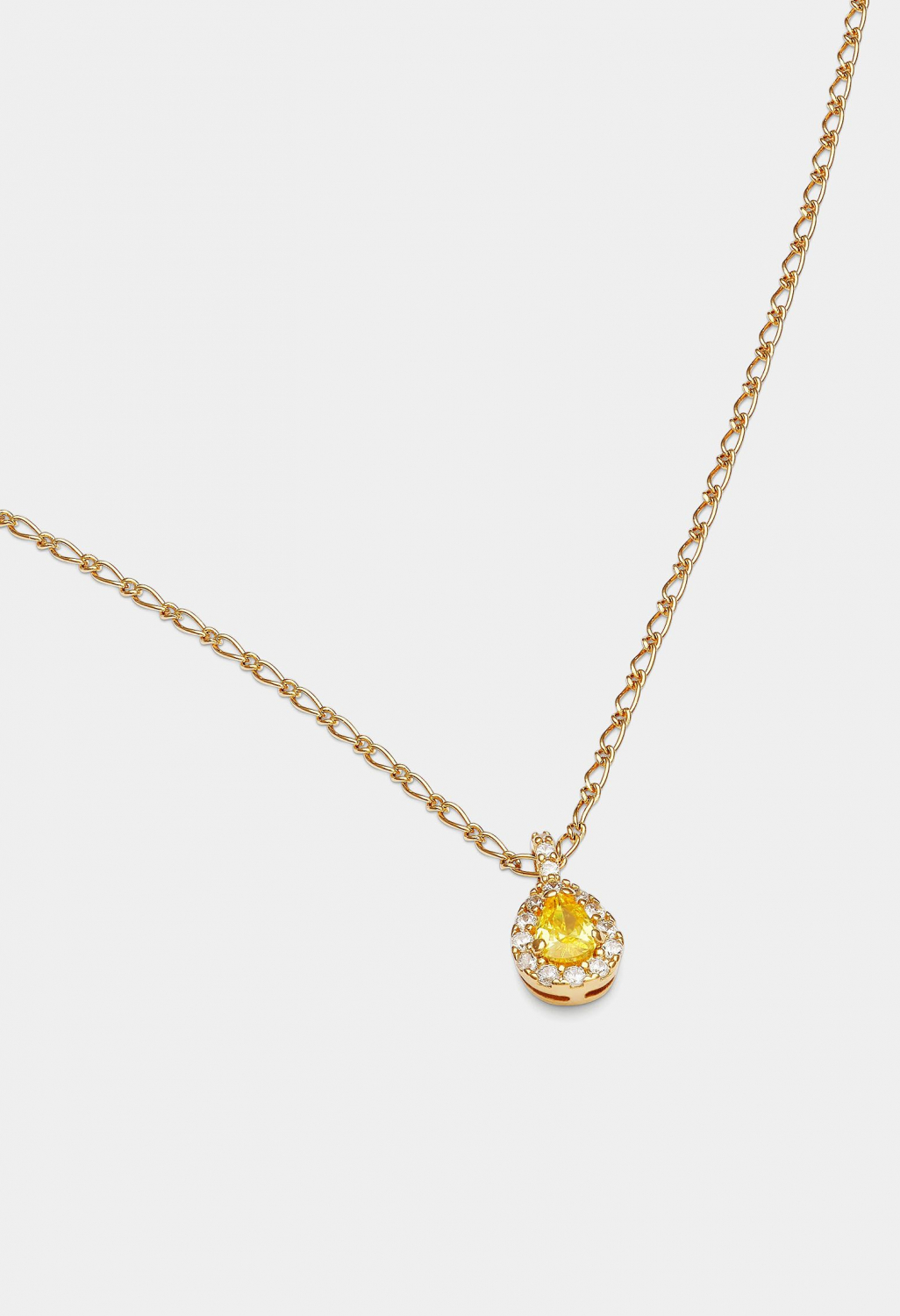 Bianca-halsbandet är ett fängslande smycke med en fantastisk päronformad gul kristall i en lyxig guldpläterad kedja. Detta halsband kombinerar elegans och modern sofistikering, vilket gör den perfekt för både vardagsbruk och speciella tillfällen.