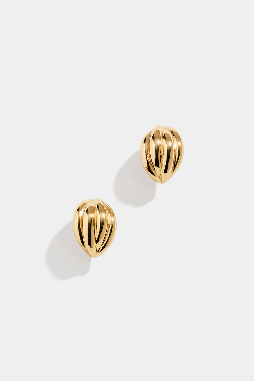Hoops i 18k guldpläterat äkta silver i bred, konvex design med ett organiskt räfflat mönster.