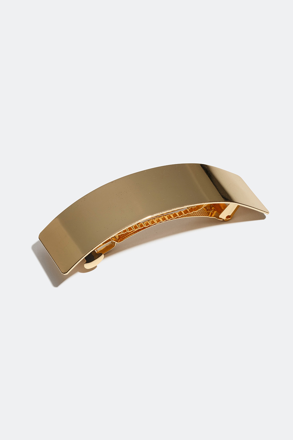 Brett hårspänne med en rektangulär platta i blank metall som har en lätt böjning. En enkel och smidig håraccessoar i stilren design som passar till alla tillfällen. Funkar perfekt för både halv och heluppsättningar.