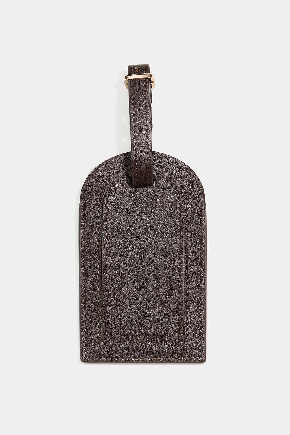 Brun bagagetag i imitationsläder som fästs på din väska. Inuti kan du skriva dina uppgifter på den medföljande adresslappen.