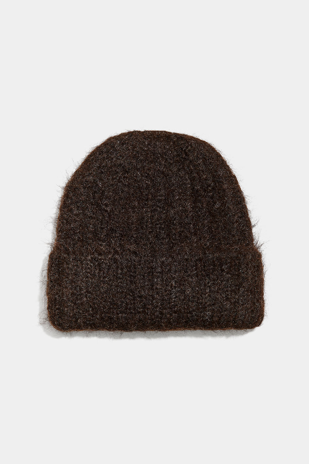 Brun ribbstickad mössa i ullblandning i gruppen Accessoarer / Stickat / Mössor hos Glitter (171001398200)