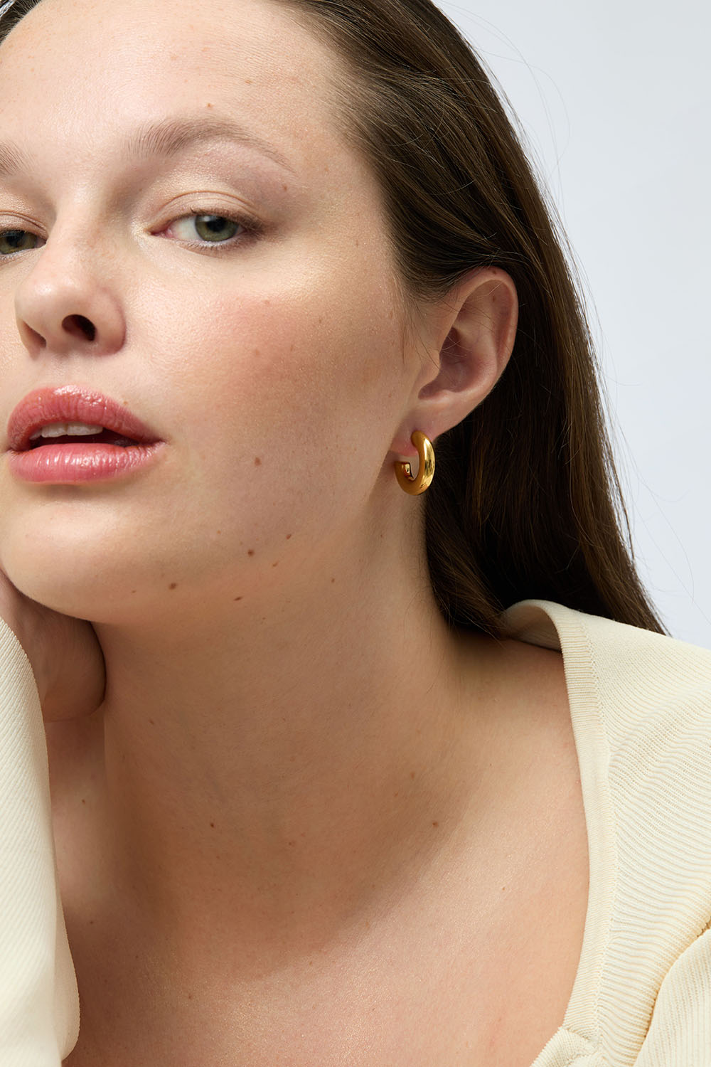 Örhängen i högpolerat rostfritt stål som är PVD-pläterat med 18K guld. Tidlöst smycke tillverkat i ett vattentåligt, allergivänligt och slitstarkt material som håller dem fina länge. Bada, duscha och träna utan att oroa dig för att de ska tappa färg. Läs mer här.