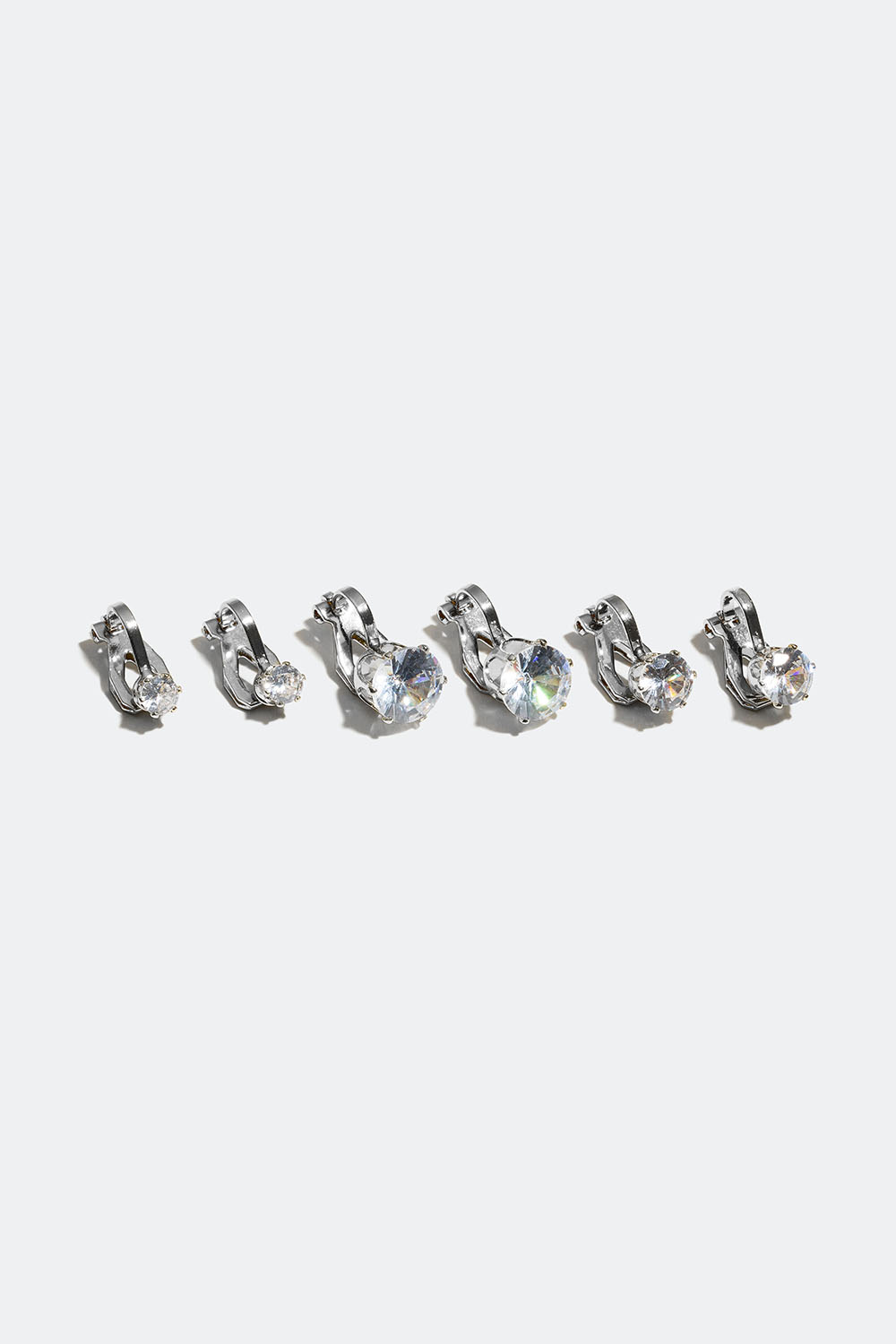 3-pack med clips örhängen i metall med stenar i Cubic Zirconia. Clipsörhängerna kommer i olika storlekar så du enkelt kan variera och använda till alla tillfällen.