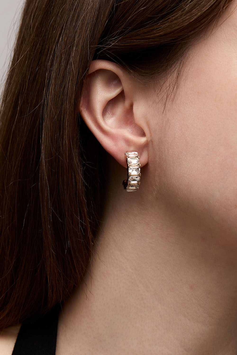 Clipsörhängen med hoops i guldfärgad metall och vita rektangulära glasstenar