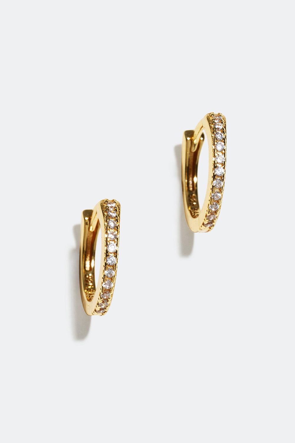 Små hoops med Cubic Zirconia stenar, förgyllda med 18K guld, 1,2 cm i gruppen Guldpläterat äkta silver / Guldpläterade örhängen hos Glitter (553000632000)