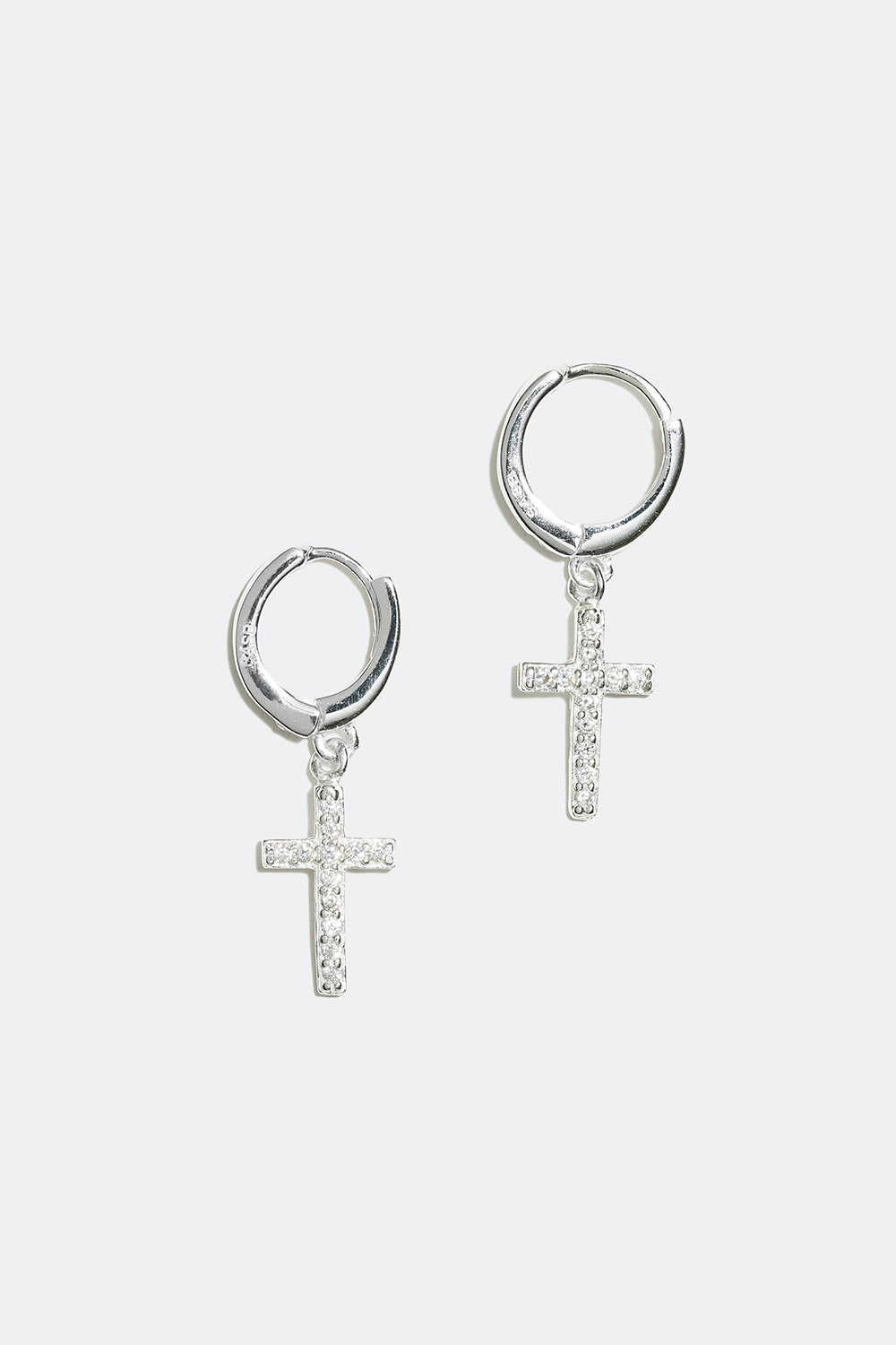 Små creoler i äkta silver med kors dekorerade med skimrande Cubic Zirconia stenar.