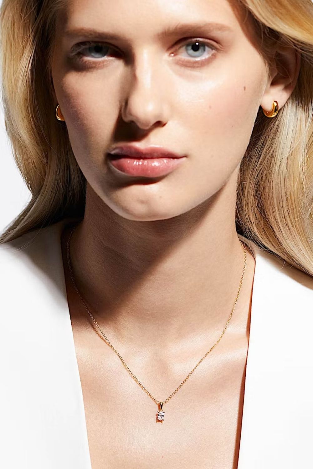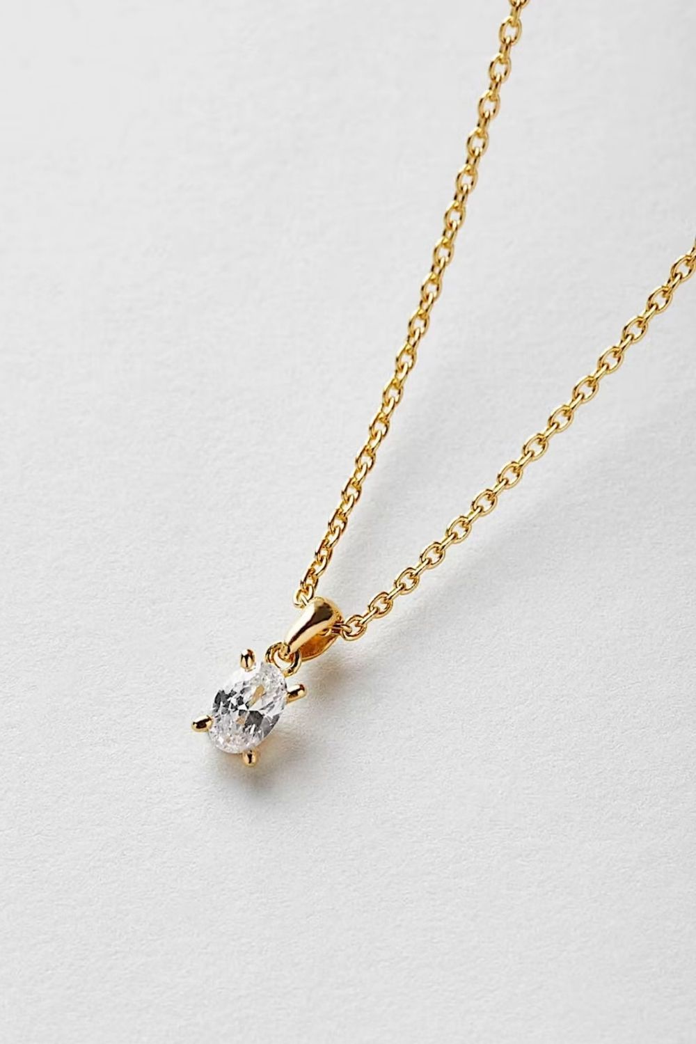 Halsband dekorerad med en klar oval Cubic Zirconia sten, pläterat med äkta 24k guld och har en kärna av äkta sterling silver 925.