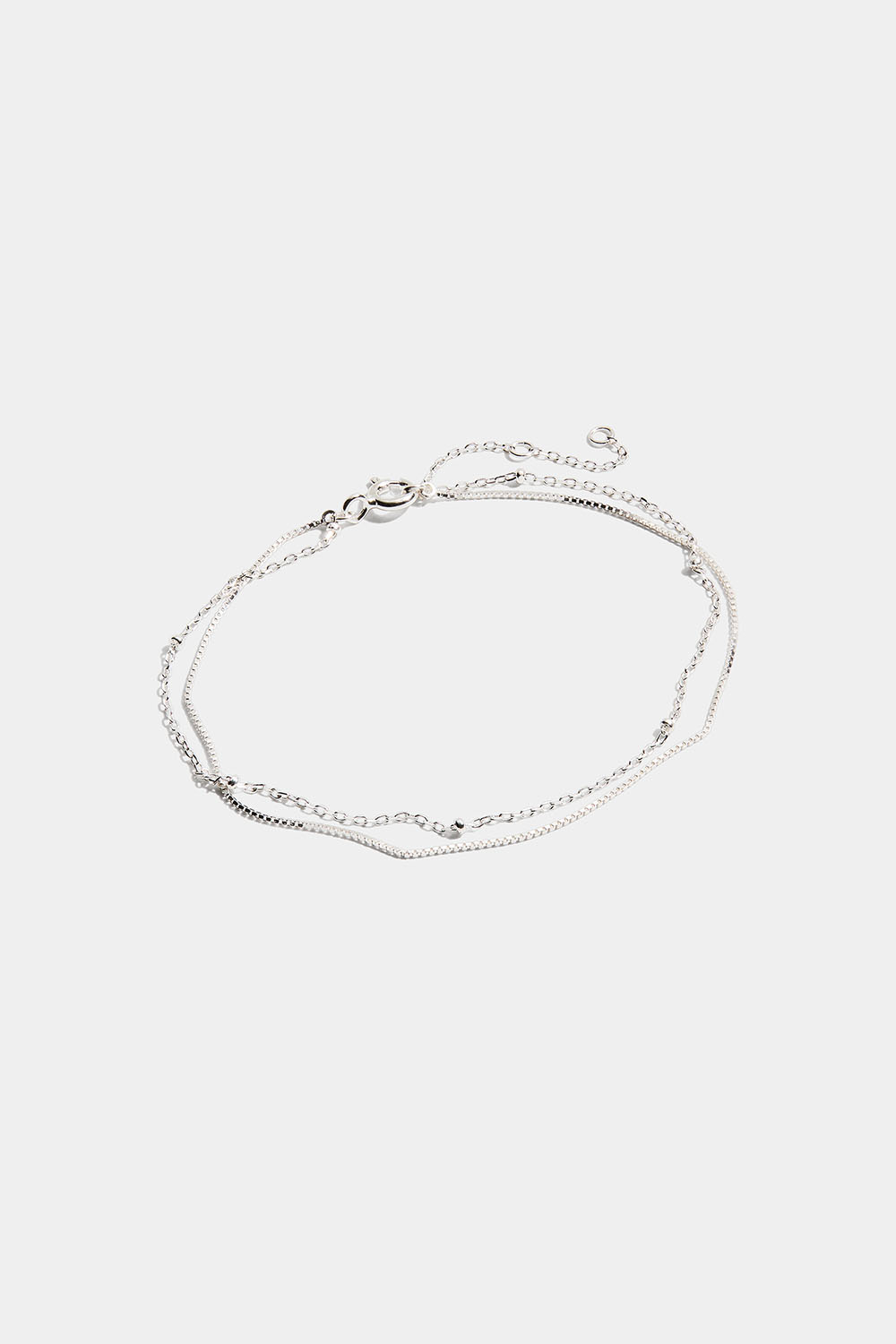 Tunt dubbelarmband i äkta silver med två kedjor. En kompakt kantig kedja och en med små silverkulor.