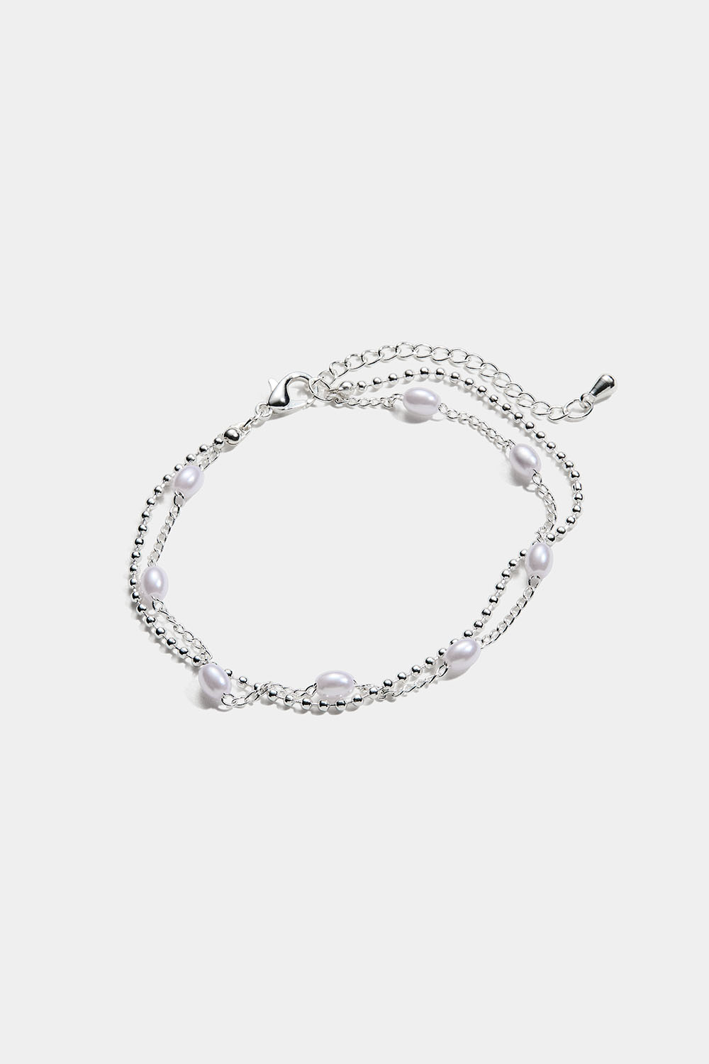 Armband i silverfärgad metall med dubbla länkar. En med kulkedja och en med små ovala pärlor.