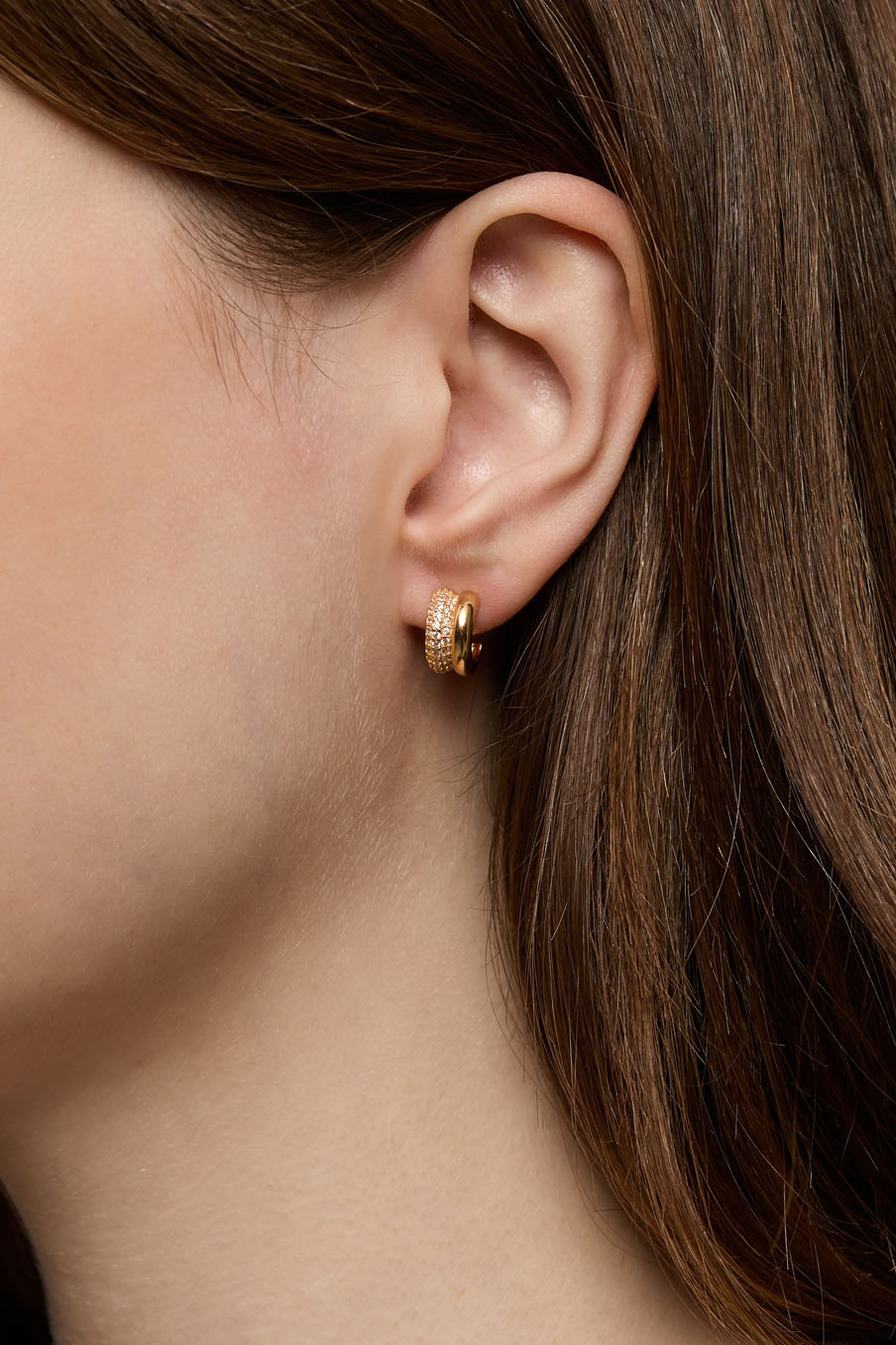 Dubbla hoops i 18k guldpläterat äkta silver i chunky design dekorerade med Cubic Zirconia-stenar.