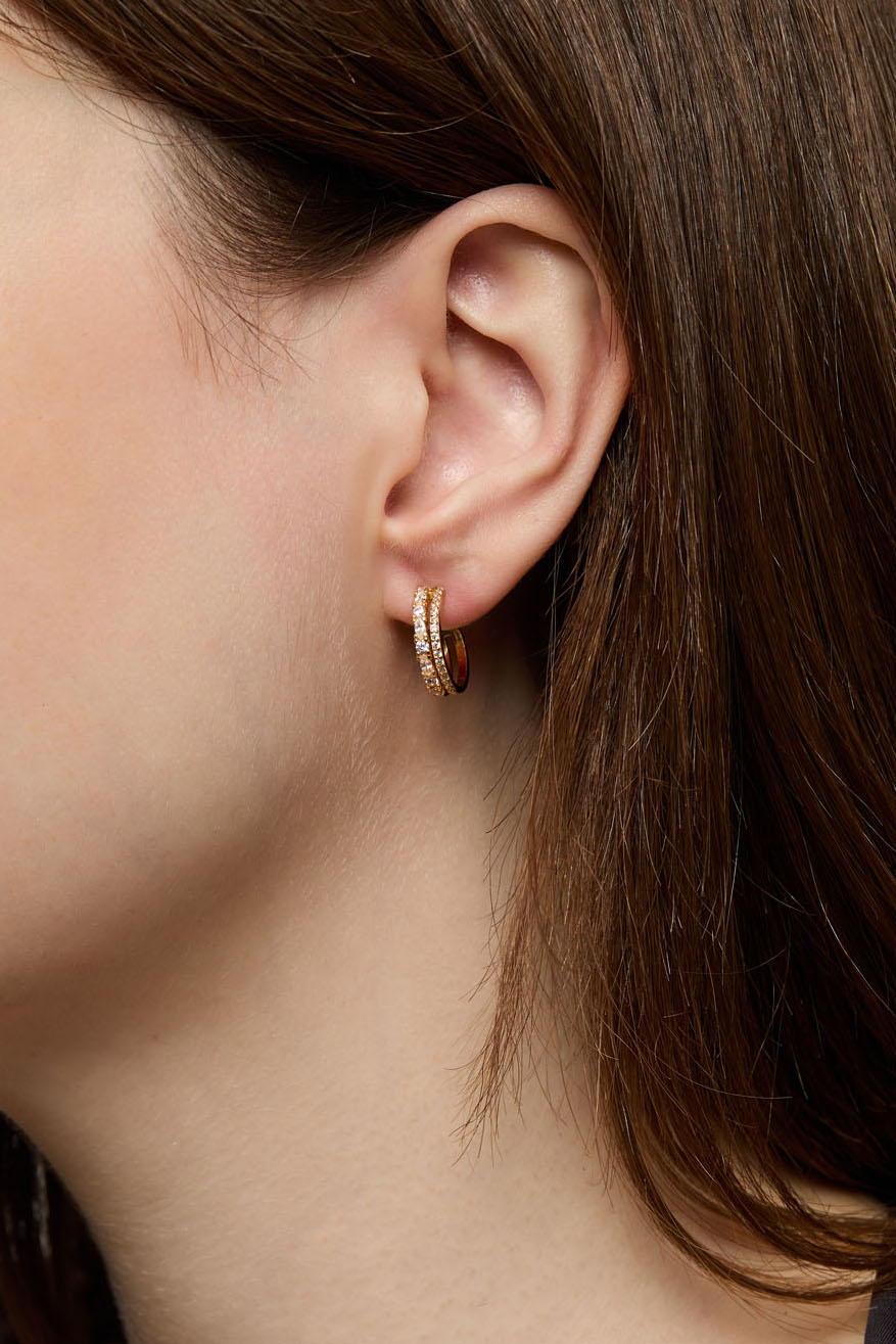 Dubbla hoops i 18k guldpläterat äkta silver med Cubic Zirconia
