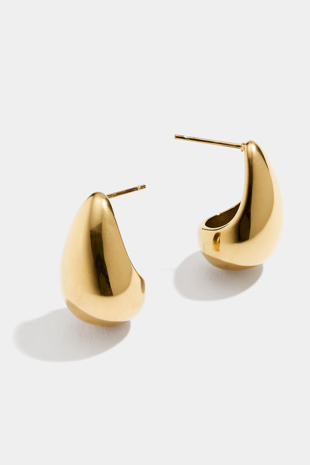 Större droppörhängen i högpolerat rostfritt stål som är PVD-pläterat.