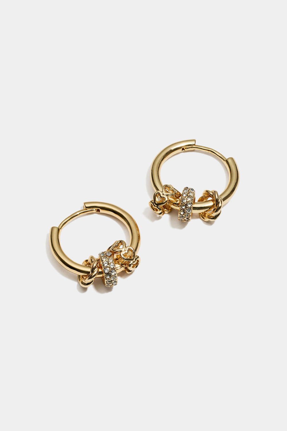 Klassiska hoops i guldfärgad metall med tre runda berlocker i olika design.