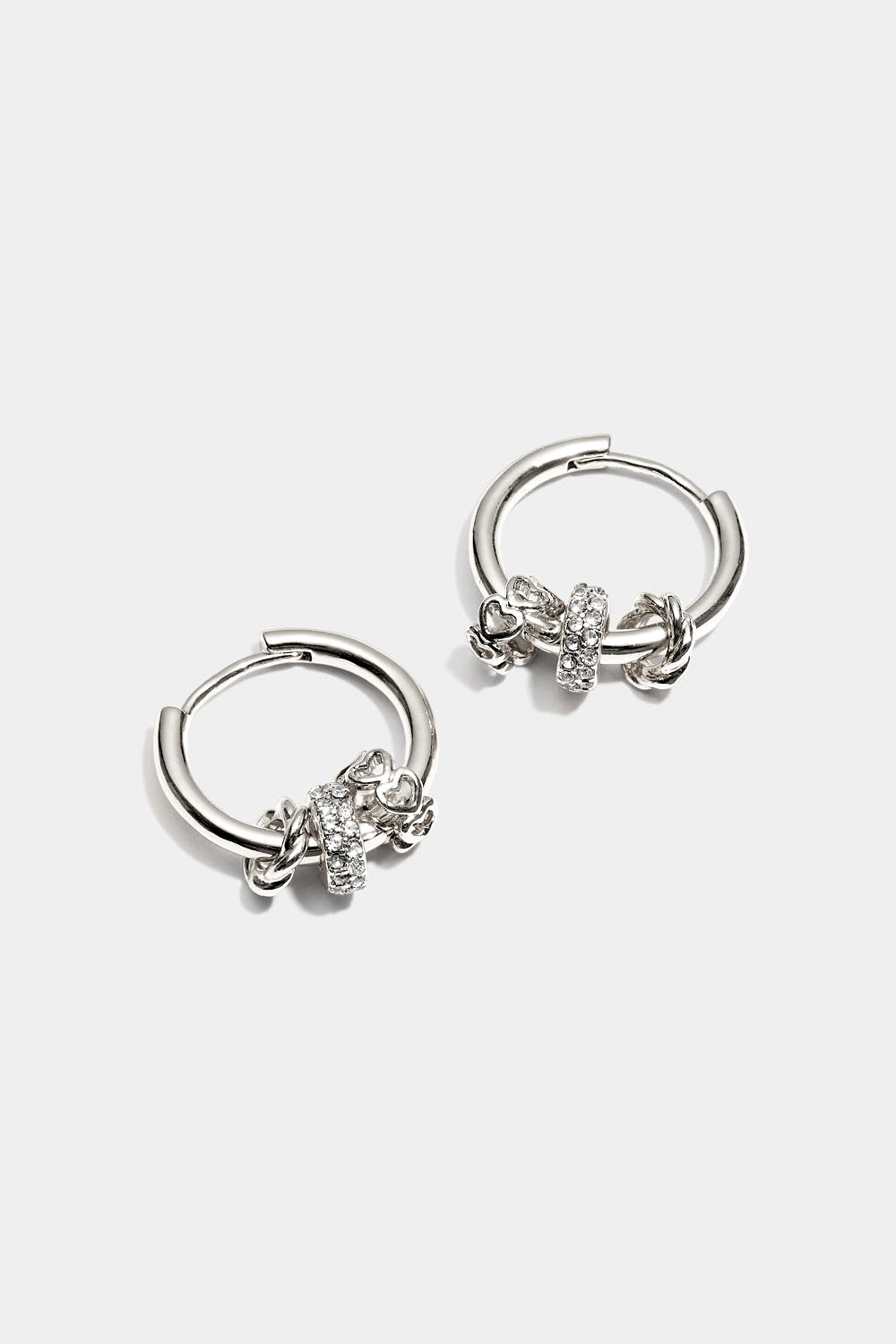 Klassiska hoops i silverfärgad metall med tre runda berlocker i olika design.