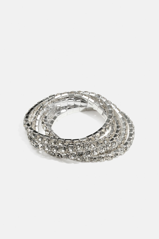 Elastiska strassarmband dekorerade med runda glasstenar. Kommer i fem pack.