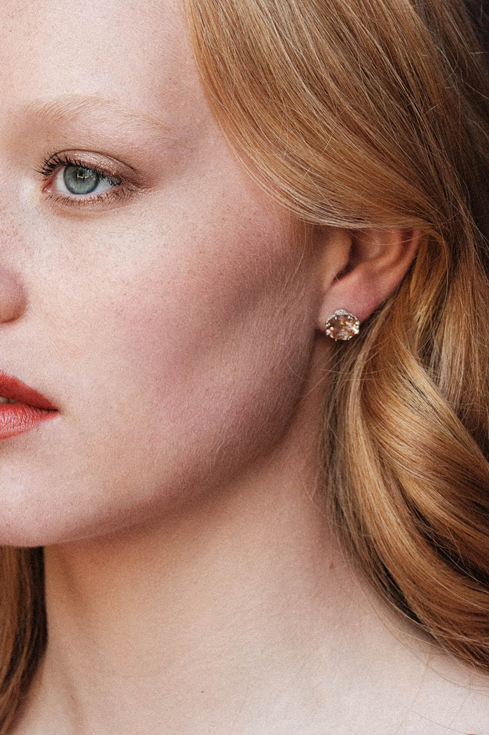 Each earring showcases a radiant round-cut stone, set in a finely detailed, polished setting that catches the light beautifully. Subtle yet captivating, these studs perfectly complement the Elenora Ring and elevate any look with refined sophistication.