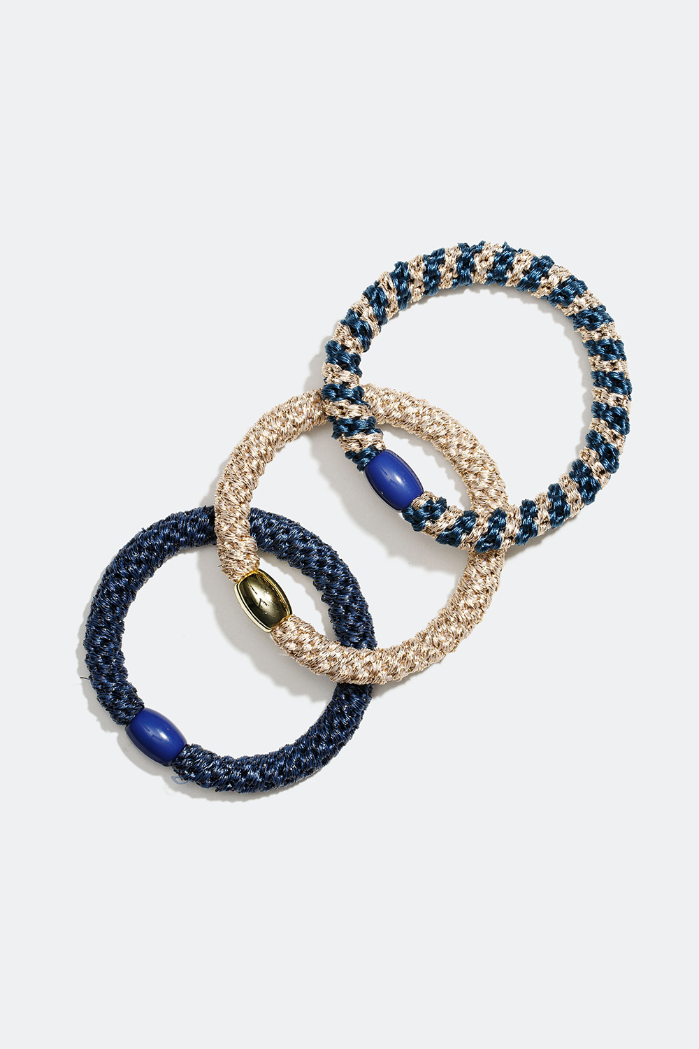 Flätade hårsnoddar i blå och guld mix, 3-pack i gruppen Håraccessoarer / Hårsnoddar / Flerpack hos Glitter (332000447900)