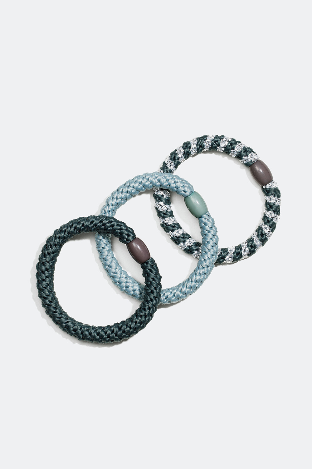 Flätade hårsnoddar i grönblåa färger, 3-pack i gruppen Håraccessoarer / Hårsnoddar / Flerpack hos Glitter (332000427800)