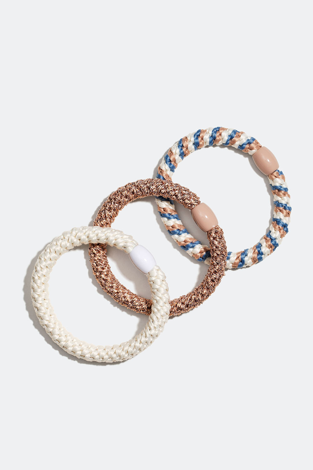 Flätade hårsnoddar i vit, beige och blå mix, 3-pack i gruppen Håraccessoarer / Hårsnoddar / Flerpack hos Glitter (332000423401)