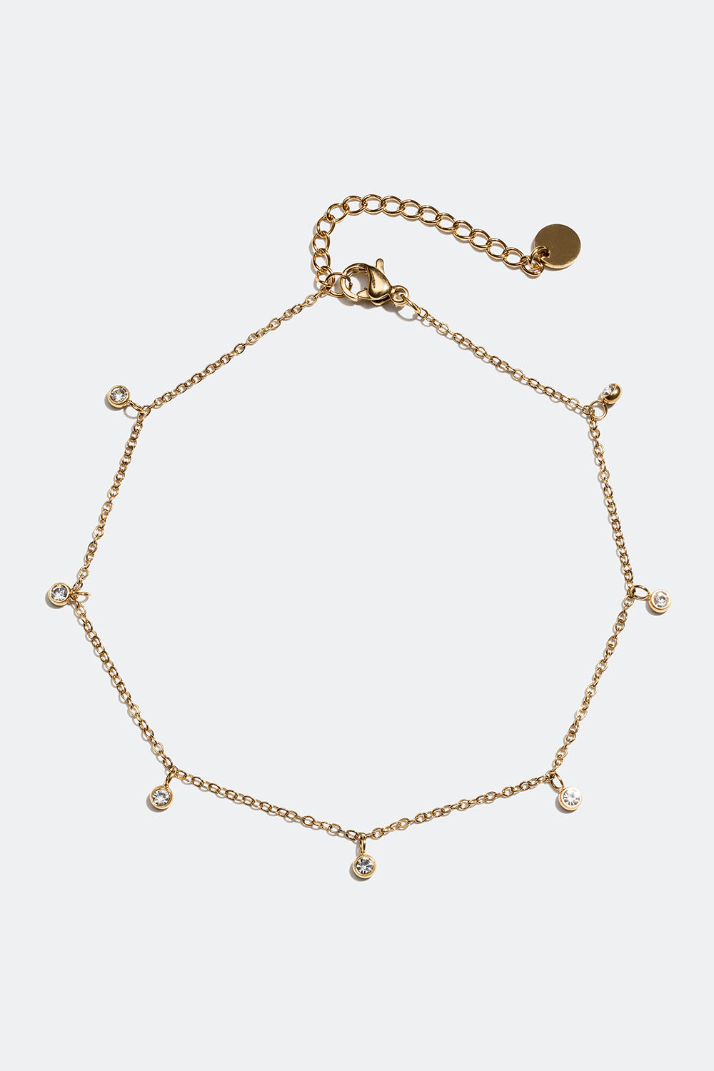 Fotlänk i stål med 18k guld med Cubic Zirconia stenar i gruppen 18k guldpläterat stål / Fotlänkar i stål hos Glitter (209000332002)
