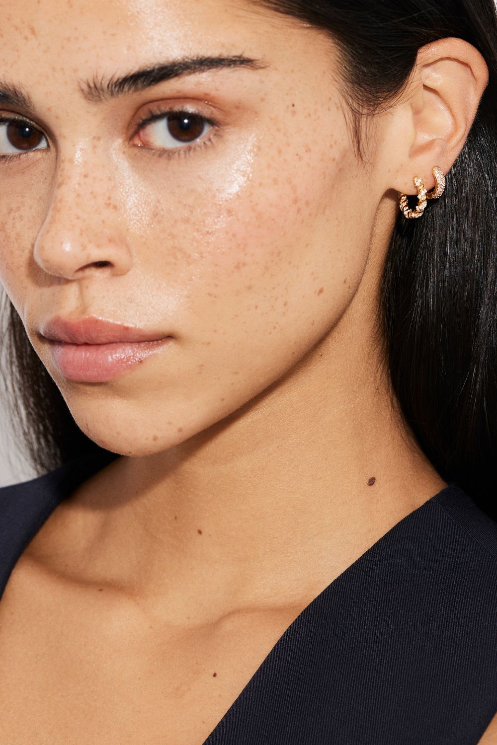 Tvinnade hoops dekorerade med klara Cubic Zirconia stenar, förgyllda med äkta 24k guld och har en kärna av äkta sterling silver 925.