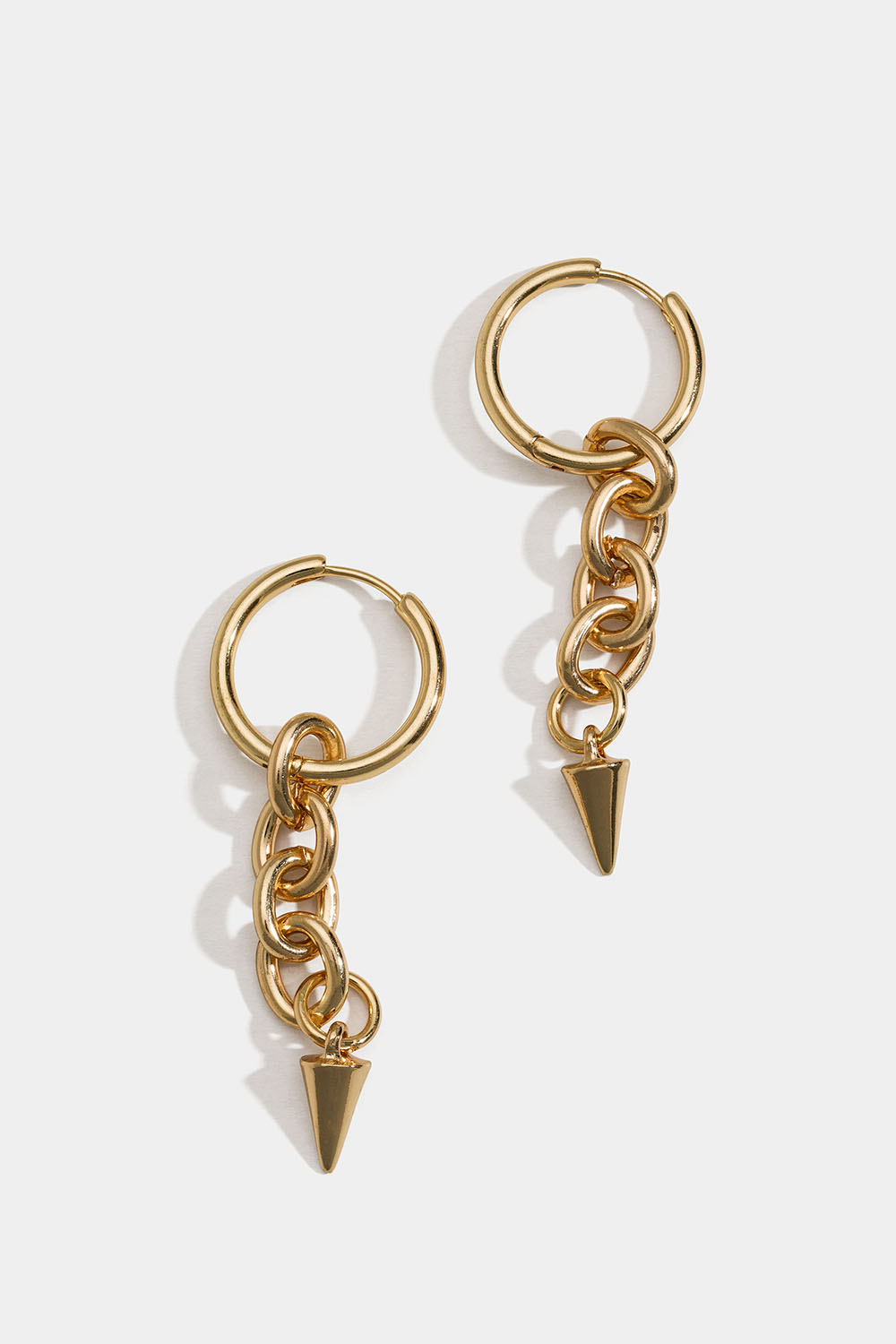 Hoops i guldfärgad metall dekorerade med grov kedja och nit längst ner. Kedjan är avtagbar och man kan välja att bara använda hoopsen som de är.