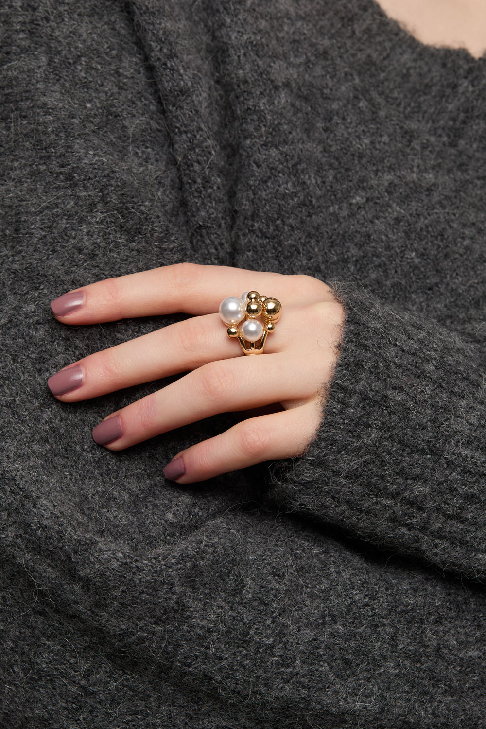 Guldfärgad justerbar ring med pärlor i gruppen Smycken / Ringar / Breda hos Glitter (256001682000)