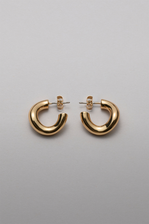 Hoops i guldfärgad metall i chunky stil och lätt böjd form.