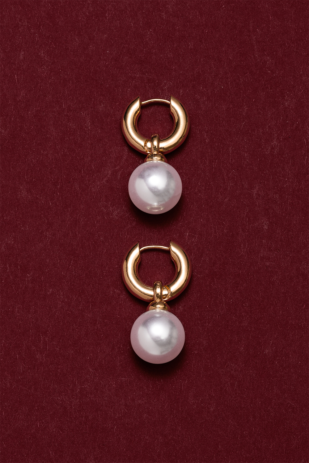 Guldfärgade chunky hoops med stor rund pärla i gruppen Smycken / Örhängen / Hoops / Hoops med hänge hos Glitter (253010202002)