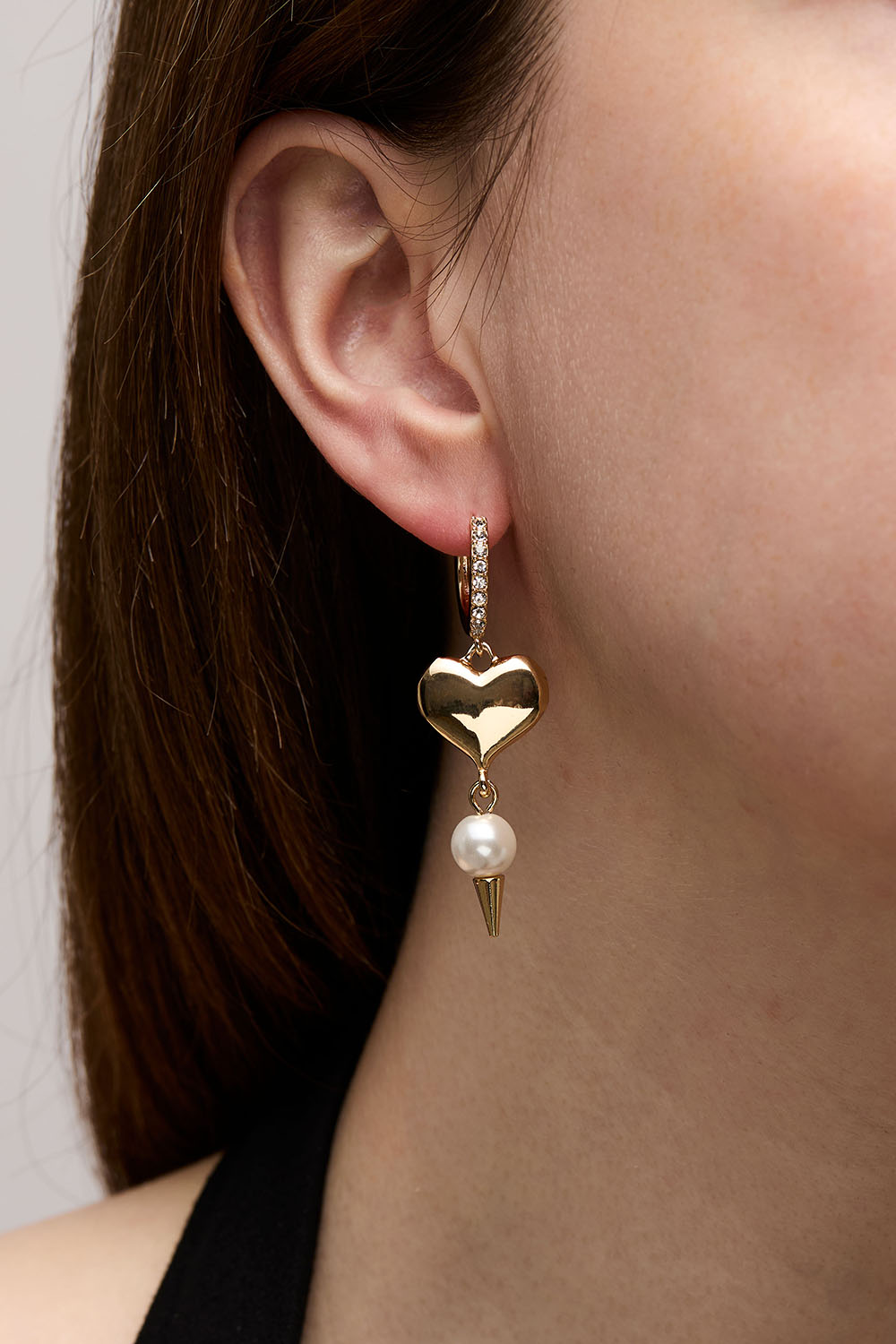 Guldfärgade hoops med hjärta, pärla och nit i gruppen Smycken / Örhängen / Hoops / Hoops med hänge hos Glitter (253010032002)