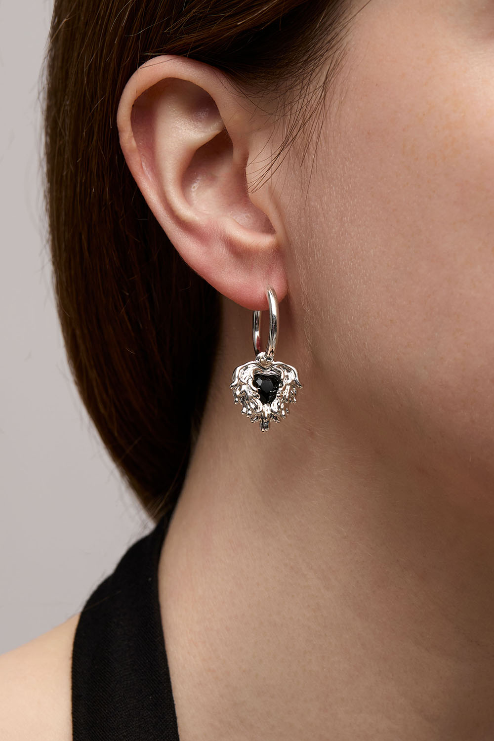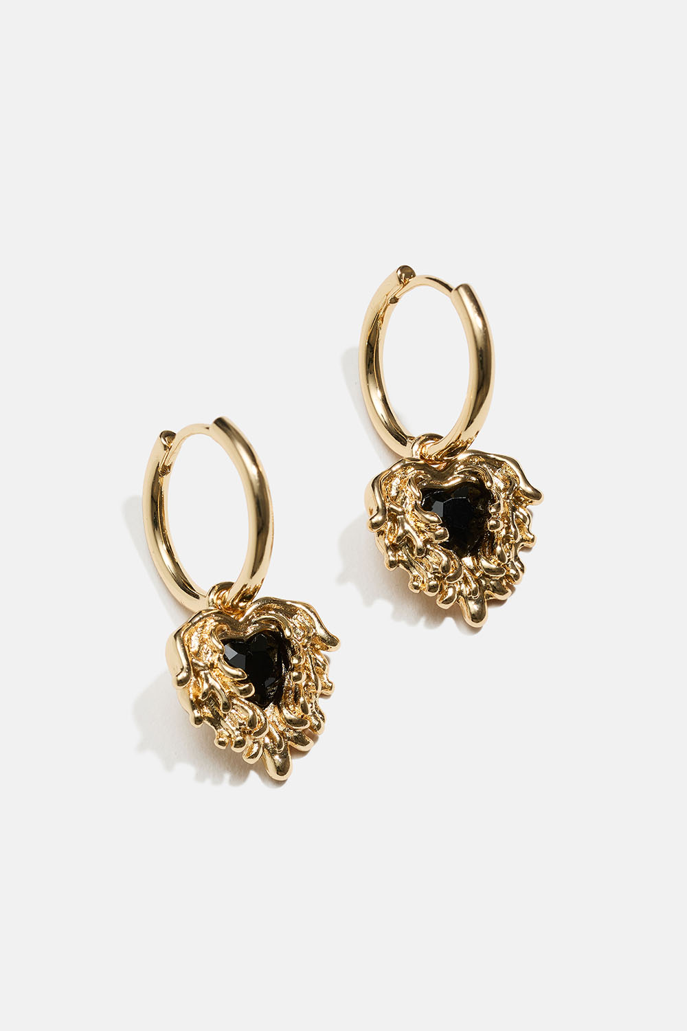 Hoops med hängande hjärtan i smält design och svart glassten.