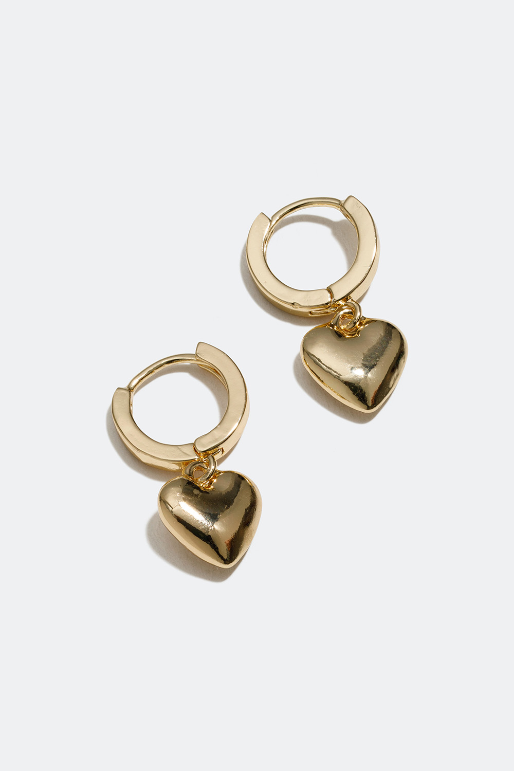 Mini hoops med dekorativa hängen av hjärtan i blank guldfärgad metall. Ett par stilrena örhängen med romantiskt design som passar till alla tillfällen och outfits. Öppnas och stängs enkelt med hjälp av en sprint som klickas ihop.