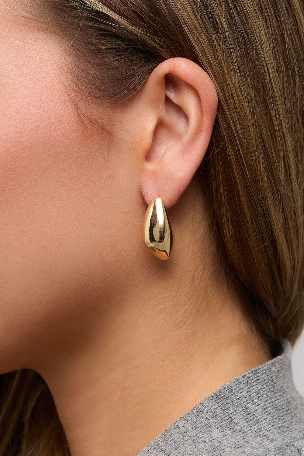Örhängen i glansig guldfärgad metall i kantig droppform