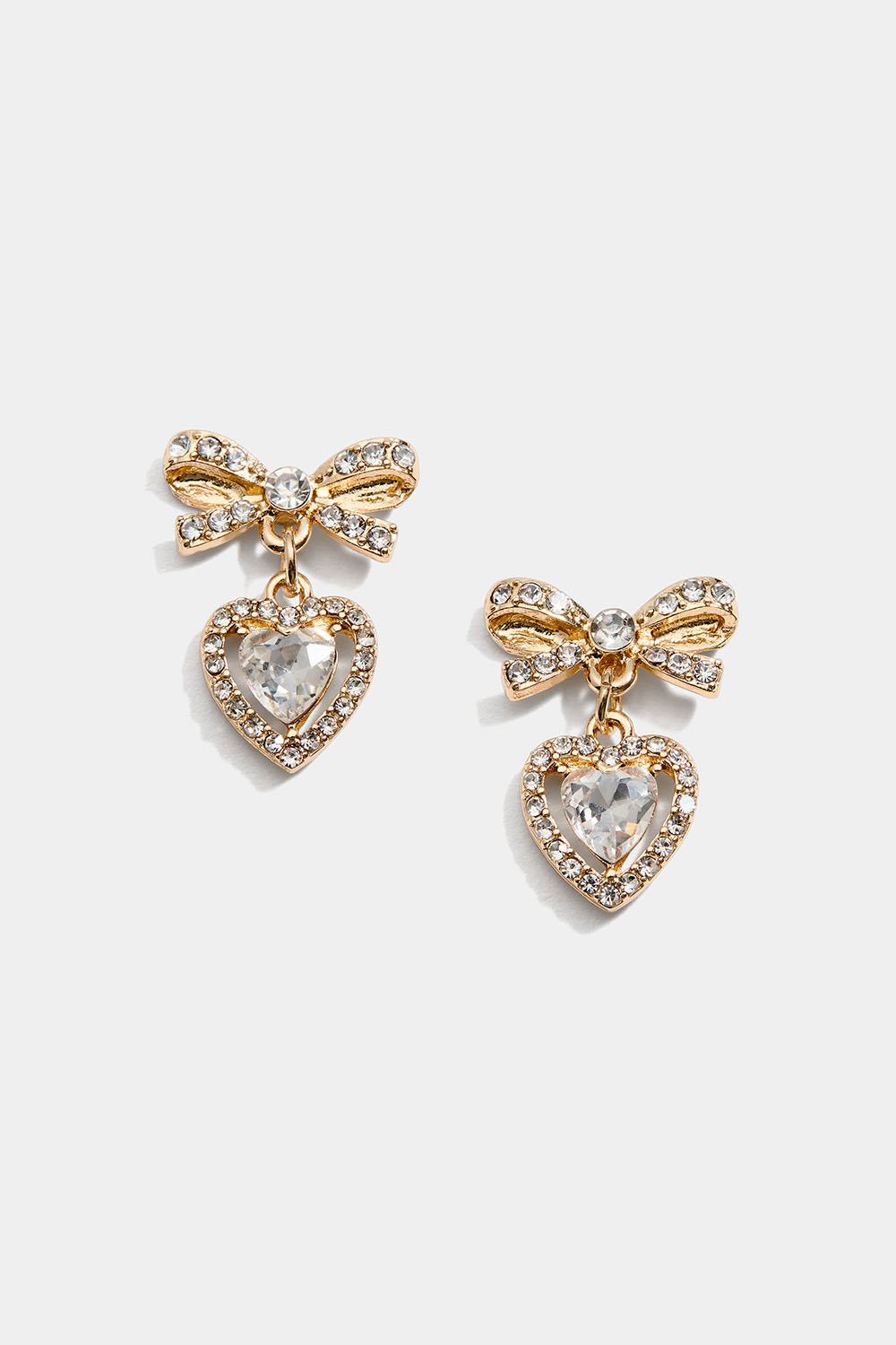 Guldfärgade örhängen med rosetter och hjärtan med strass