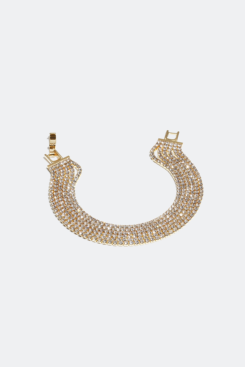 Guldfärgat armband i metall med sex skimrande strasslänkar i form av klara glasstenar. Öppnas och stängs med ett spänne på undersidan. Ett perfekt armband till säsongens festliga tillfällen.