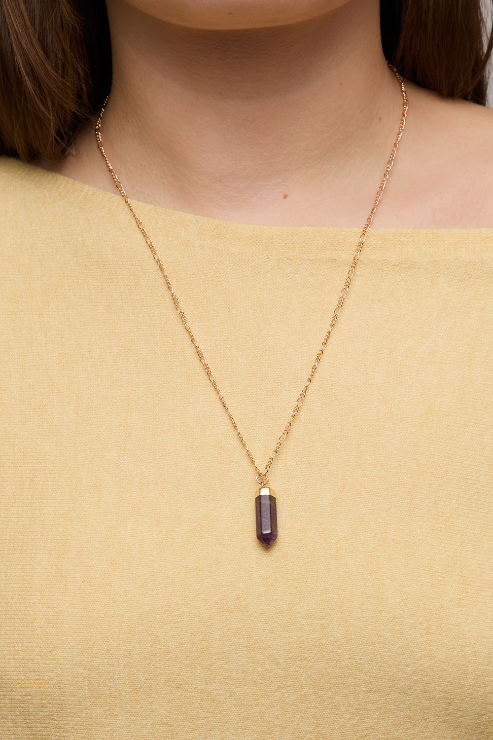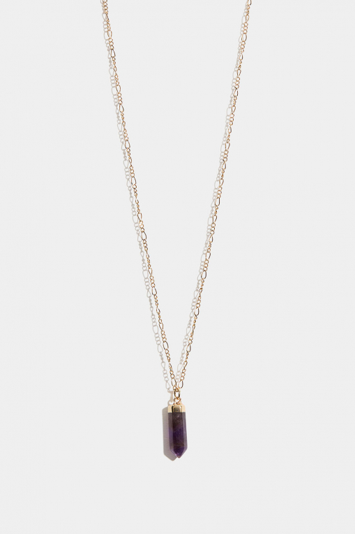 Halsband i guldfärgad metall med figarokedja och ametisthänge.