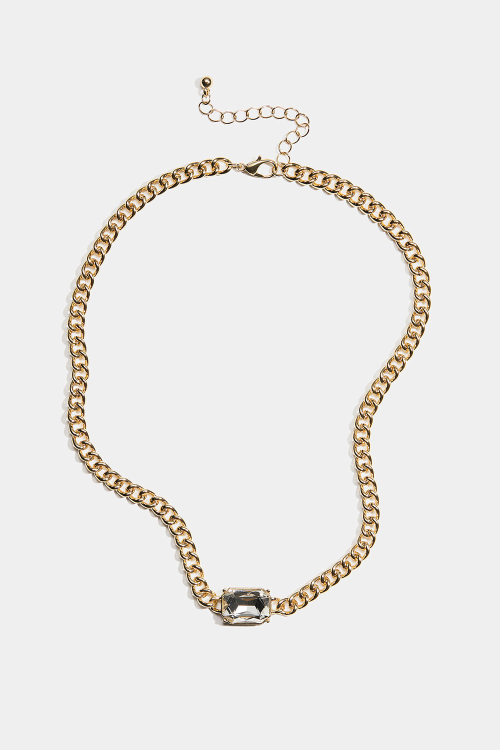 Guldfärgat halsband med grov kedja stor glassten i gruppen Smycken / Halsband / Halsband med hänge hos Glitter (254002412002)