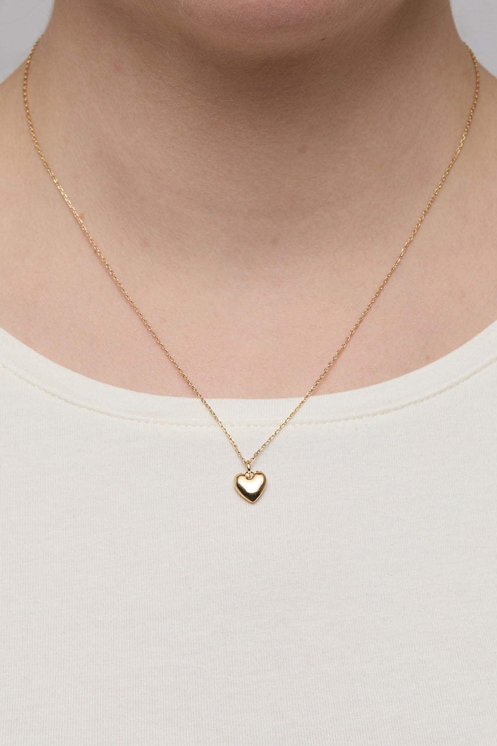 Halsband i guldfärgad metall med tunn kedja och ett litet hjärta som hänge. Ett enkelt och stilrent halsband med klassisk hänge som passar till alla tillfällen. Perfekt att använda i sin enkelhet eller i kombination med andra halsband för en lager-på-lager look.