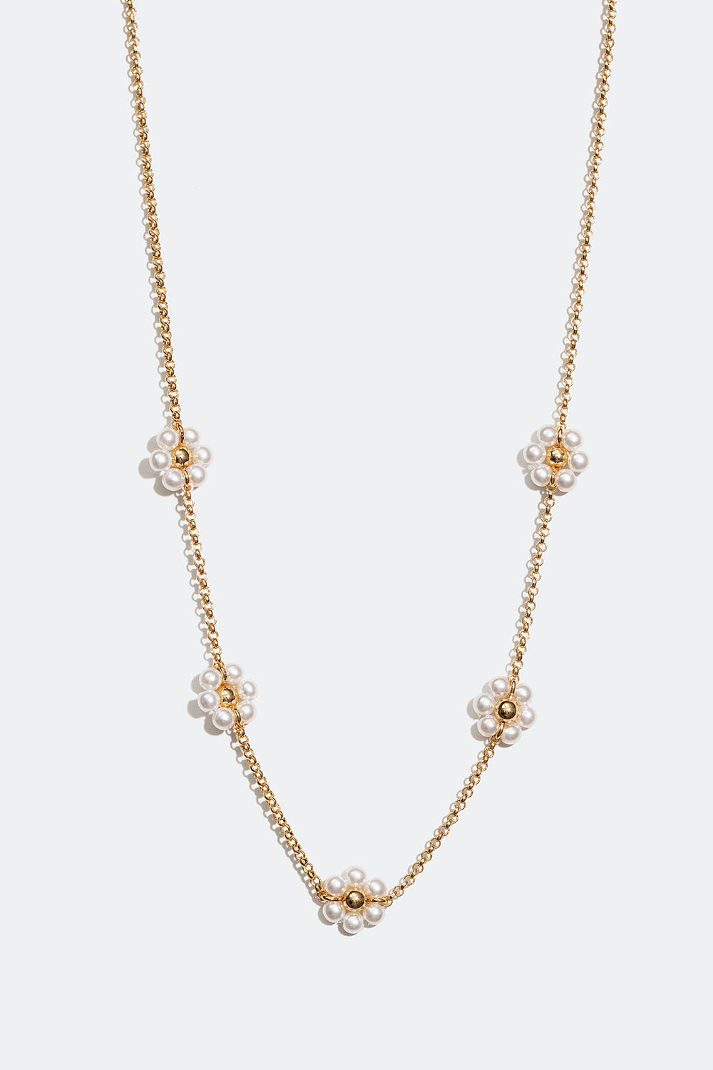 Guldfärgat halsband med vita blommor i gruppen Smycken / Halsband / Halsband med hänge hos Glitter (254001442002)