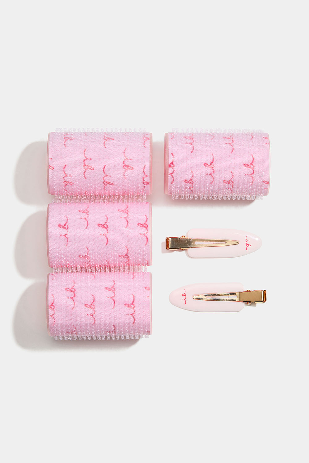 Set med produkter som ger ditt hår extra volym. Settet innehåller fyra hårrullar i velcro-material och två hårspännen för att hålla håret på plats under styling.