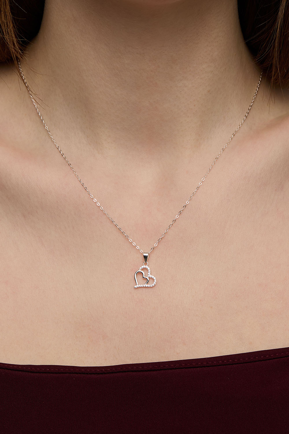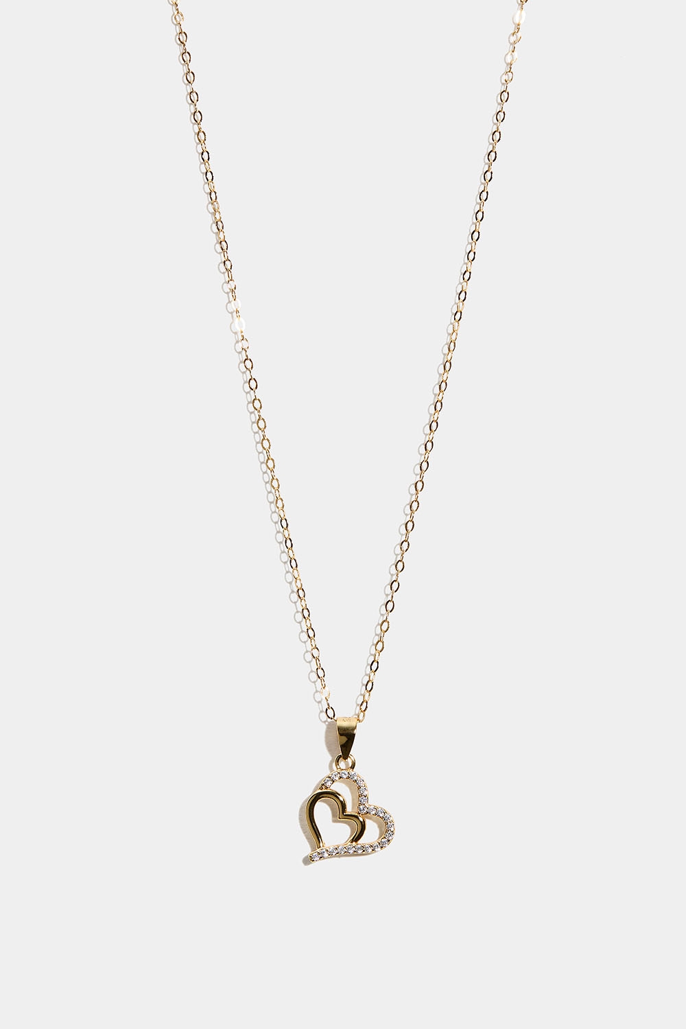 Halsband i 18k guldpläterat äkta silver med dubbelhjärta och Cubic Zirconia i gruppen Smycken / Halsband / Halsband med hänge hos Glitter (554001442002)