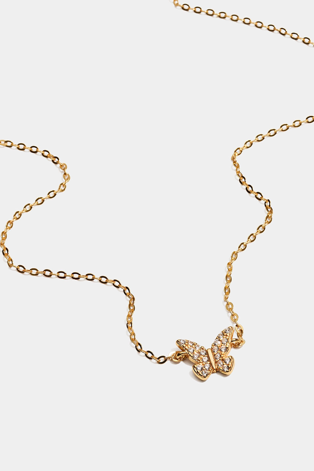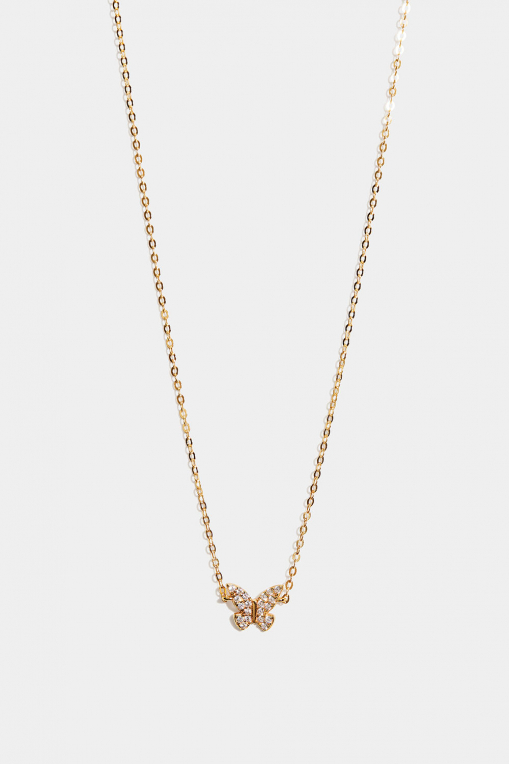 Halsband i 18k guldpläterat äkta silver med en fjäril dekorerad med Cubic Zirconia-stenar.