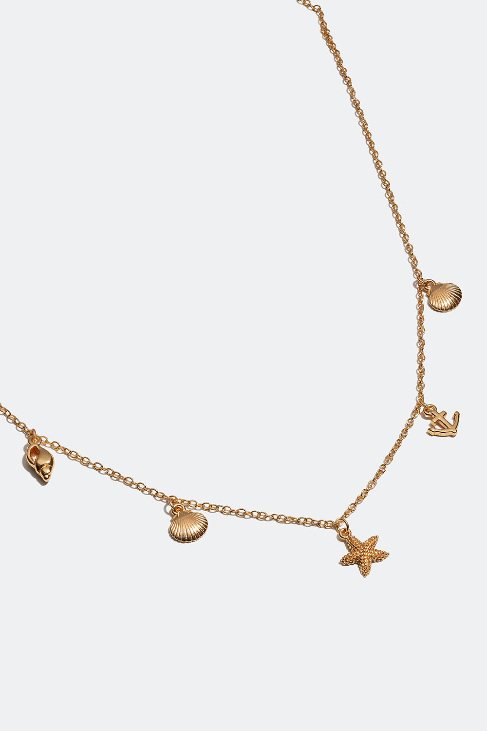 Halsband i 18k guldpläterat äkta silver med snäckor, sjöstjärna och ankare i gruppen Guldpläterat äkta silver / Guldpläterade halsband hos Glitter (554000992002)