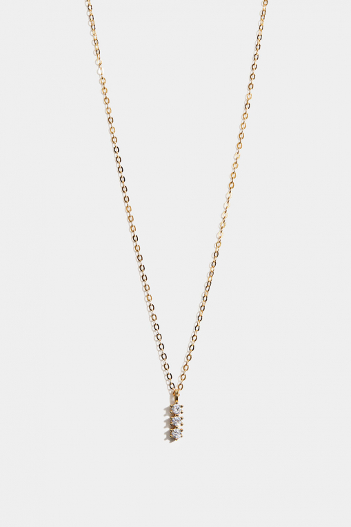 Halsband i 18k guldpläterat äkta silver med hänge av en stav, dekorerad med klara Cubic Zirconia stenar.